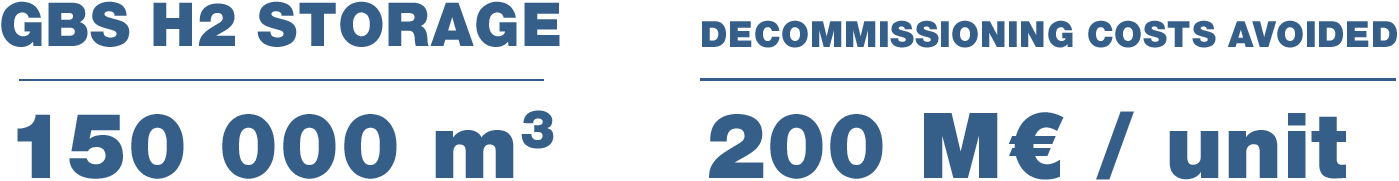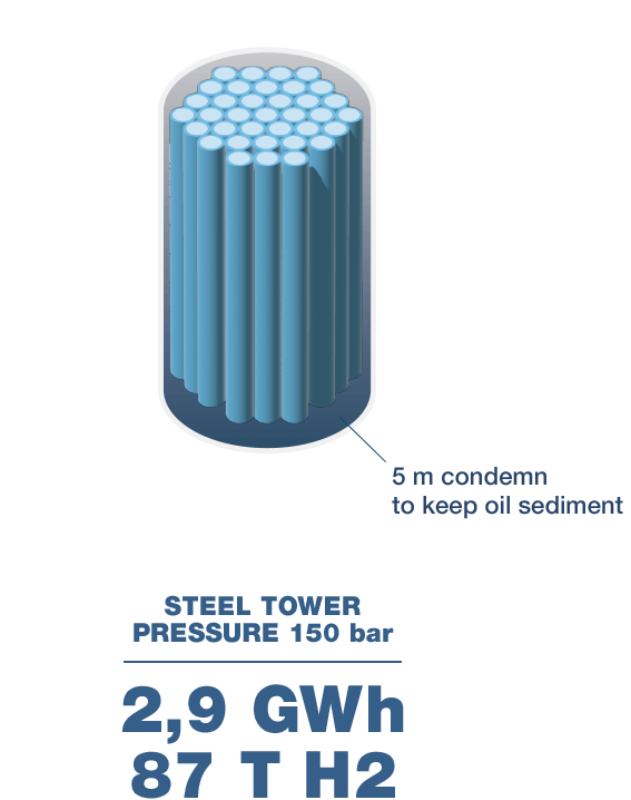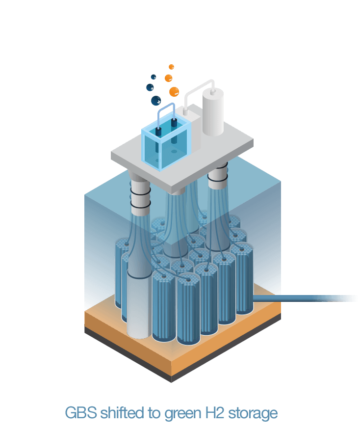 More than 1 TWh of Green H2 can be stored as a gas at 150 bar using the old Gravity Based Structure (GBS) in the North Sea.