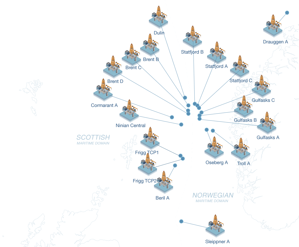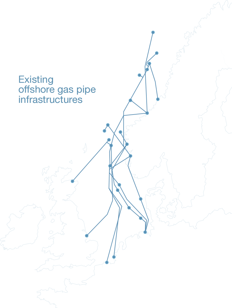 Existing offshore and onshore gas infrastructure to transport significant amounts of gas and green H2 while limiting new investments in electrical power lines.